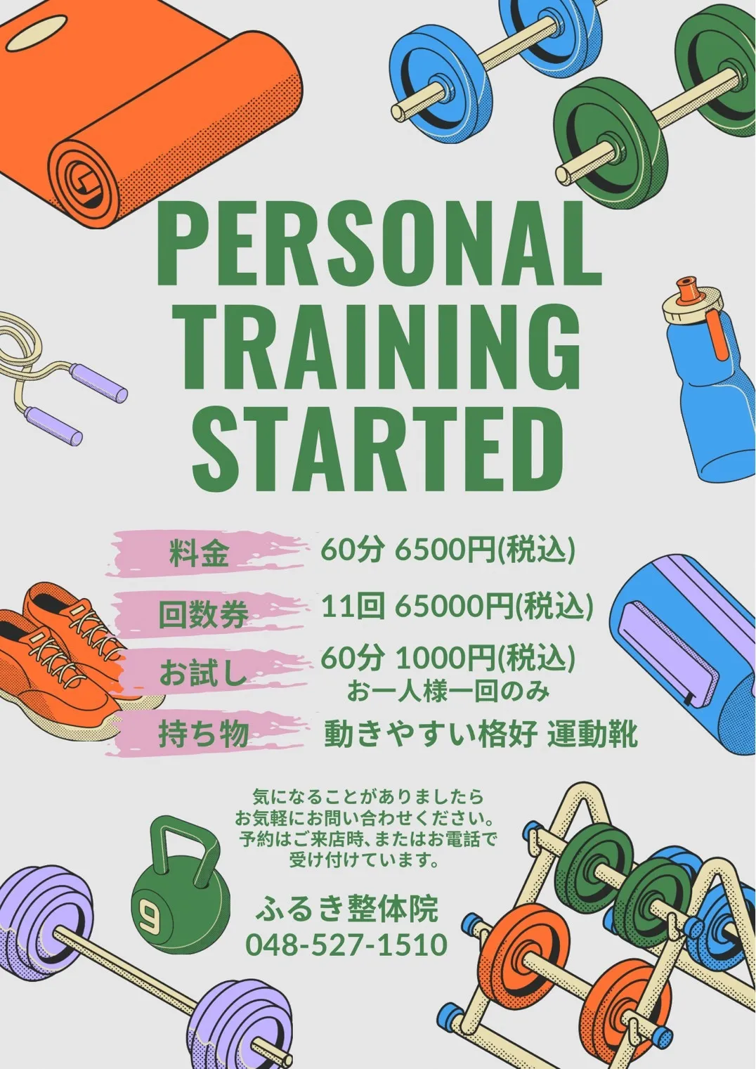 ふるき整体院では、パーソナルトレーニングをおこなっております。